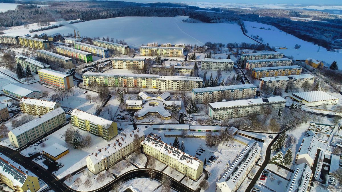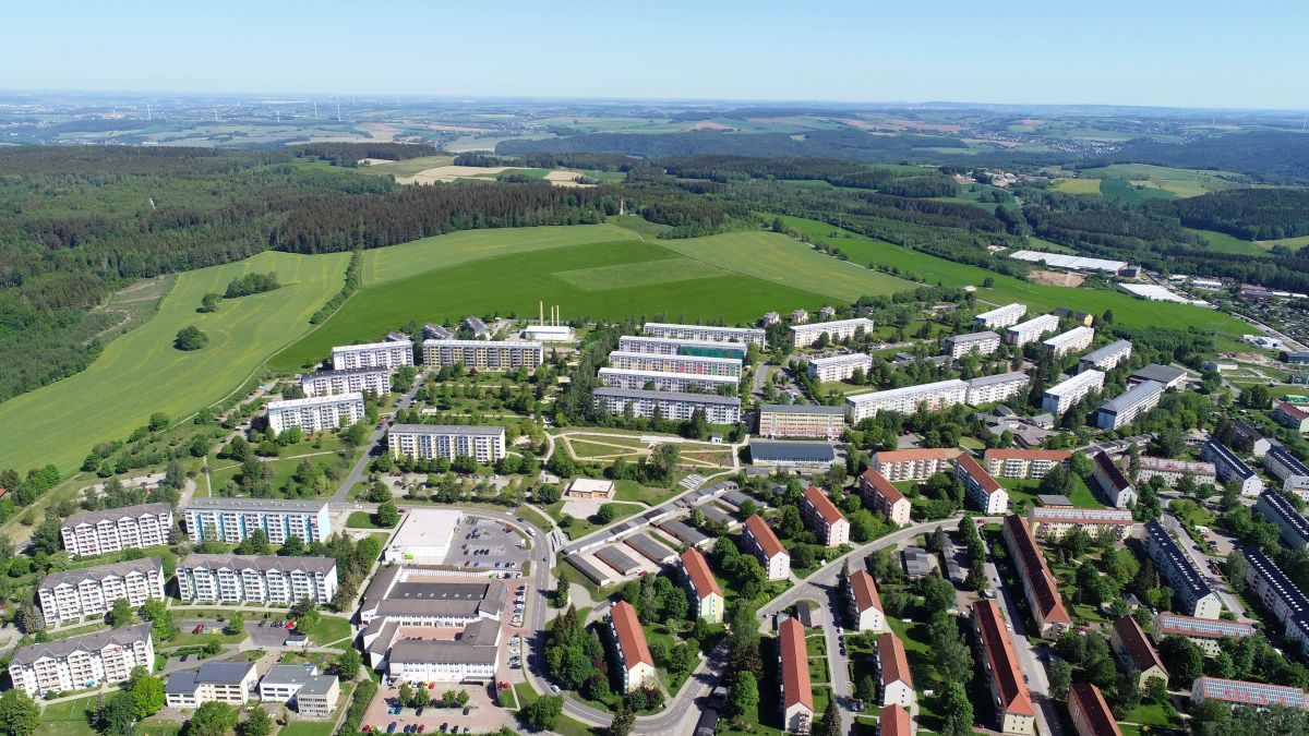 Hier fügt sich moderne Systemarchitektur in die Landschaft zwischen Schneeberg und Griesbach ein und bildet einen eigenen Stadtteil mit Nahversorgungszentrum, Apotheke, Kindergarten, Schule und ÖPNV – Anbindung. Hoch hinaus geht es in die modernen Wohnungen der Mehrfamilienhäuser – gern auch mit Aufzug und das mit kurzen Wegen zu den Waren des täglichen Bedarfs. Alle Wohnungen verfügen über Balkon von dem aus Sie den Ausblick zum Teil weit ins Land genießen können. Parkmöglichkeiten stehen ebenfalls wohnortnah zur Verfügung.